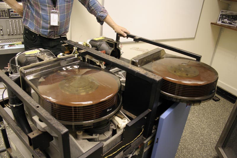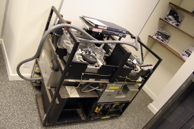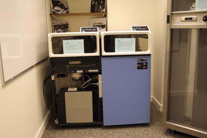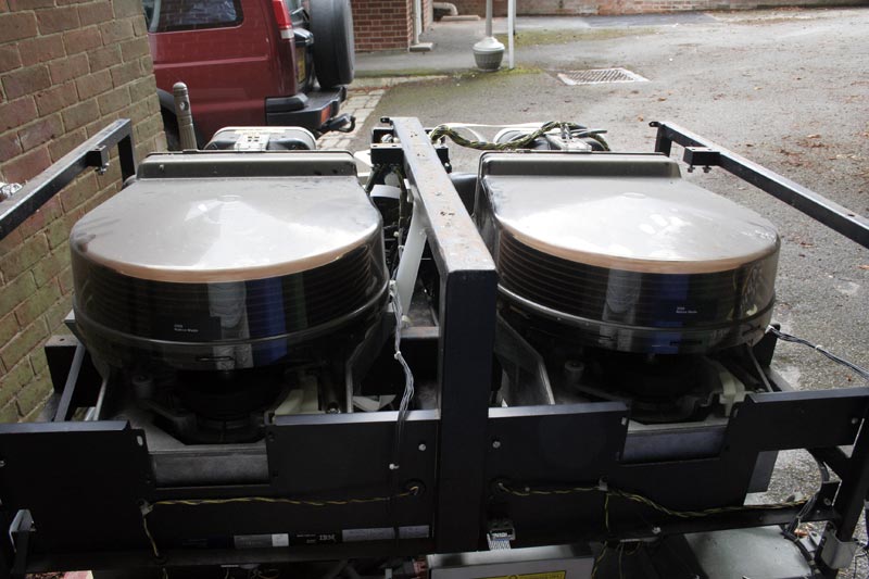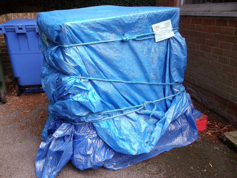 In order to get the 3350 into the House, we had to strip off the one remaining door and all the cover hinges to get it though the doors and strip out the two Head Disk Assemblies (HDAs) in order to reduce weight.  Having got the unit though the Emergency Exit of the House, we reassembled the lot. If you know of a spare set of covers or even just a left front door, we would be happy to give them / it a new home