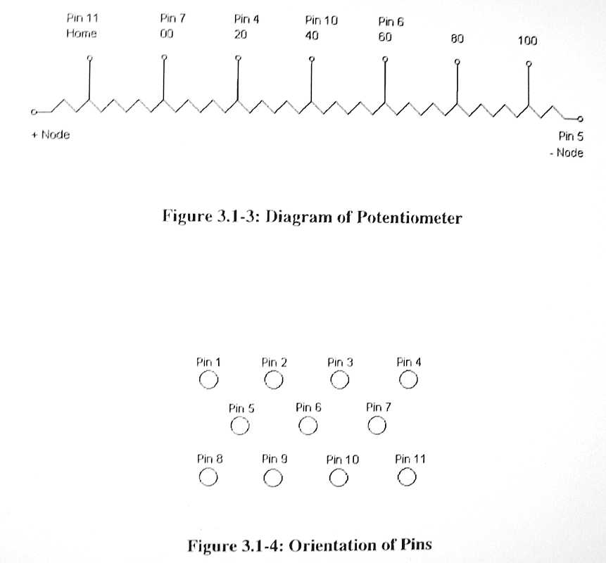 3. "The constant resistance step betweenn pin 5 and pin 11 shows that the potentiomenter is farily linear. Moving from pin 5 to pin 11, we found that we had a resistance step of 3.8 KOhm between each tap."